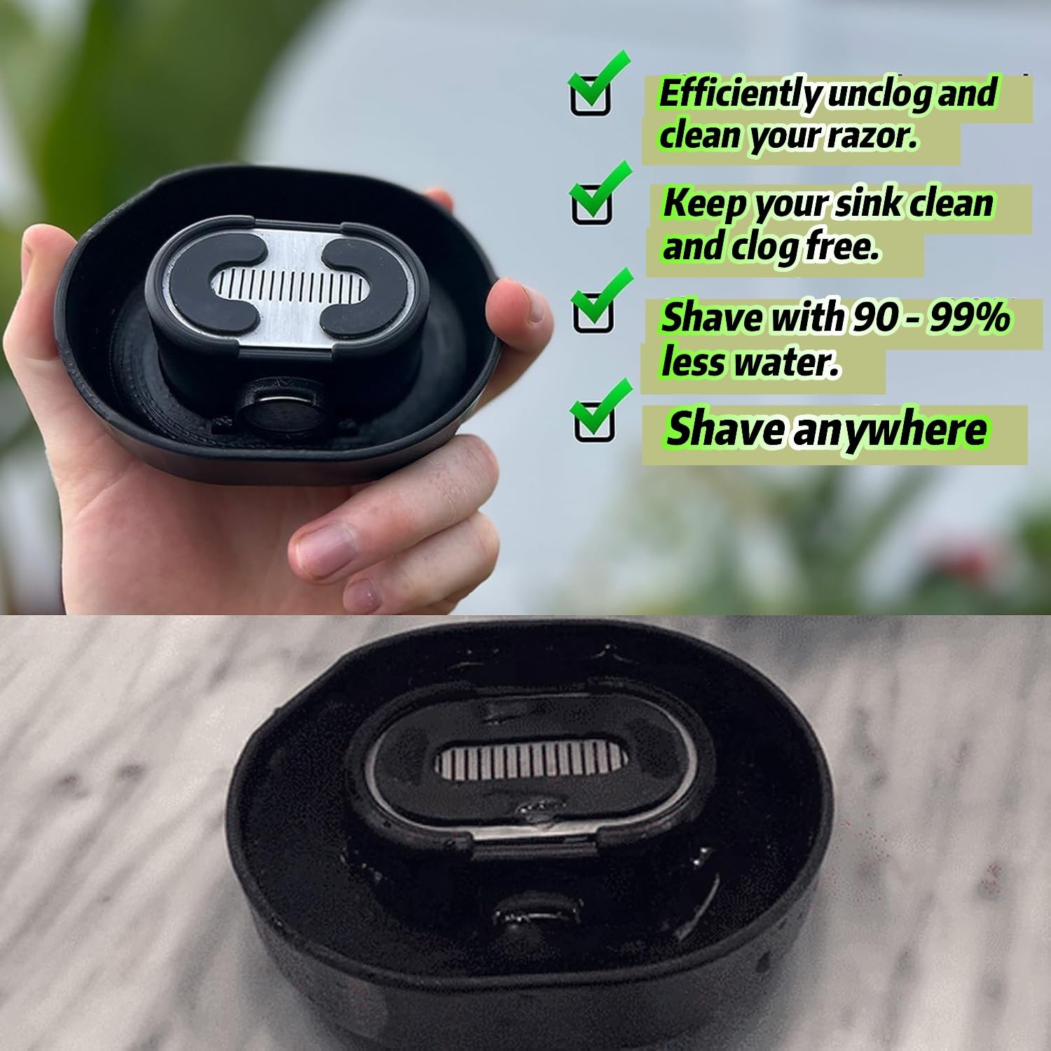 Push-type blade cleaner that quickly removes hair and buildup. No electricity needed—easy, fast, and suitable for most razors