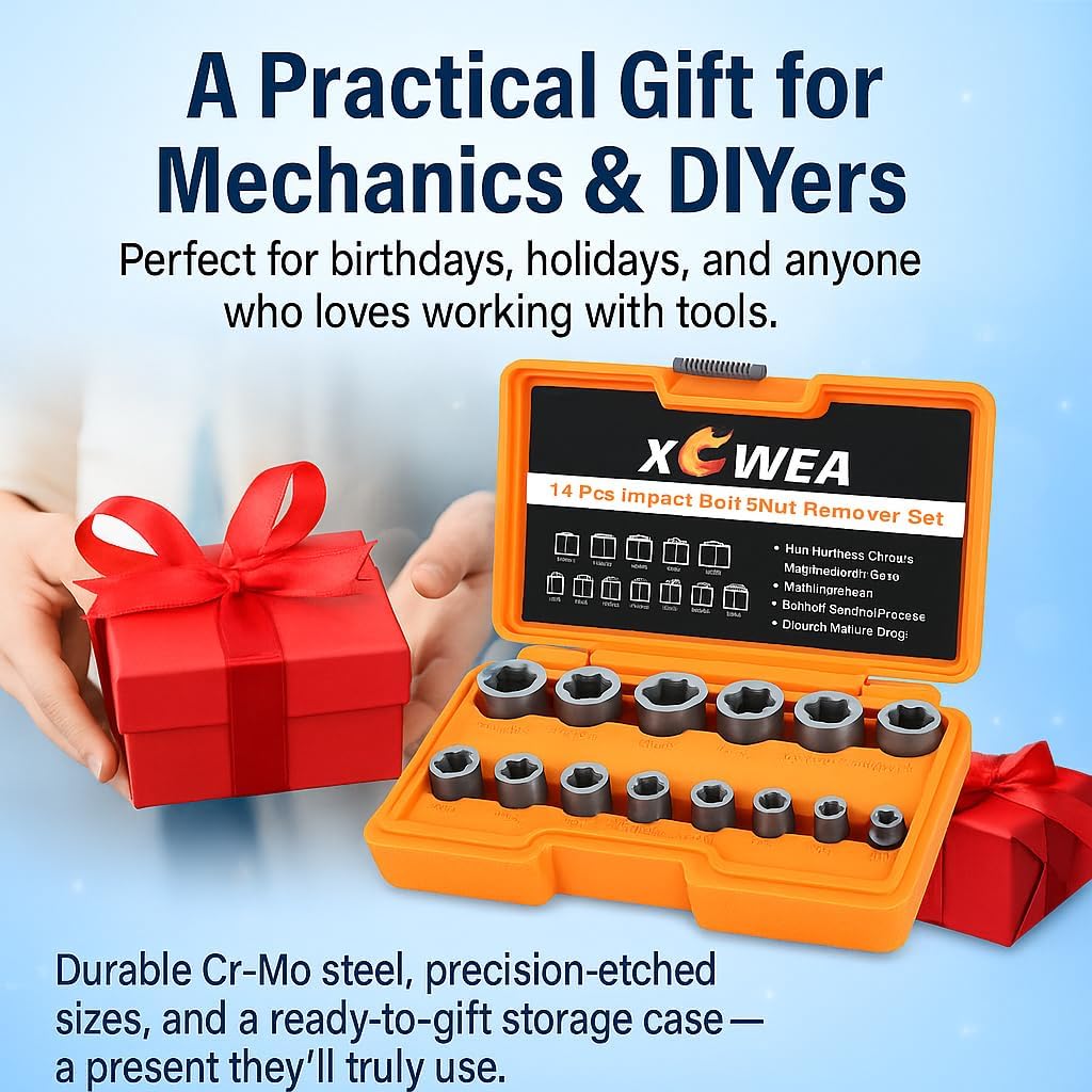 Impact-grade Cr-Mo steel sockets designed to remove stripped, broken, or rounded bolts and nuts. Durable and essential for tough repairs. 🛠️